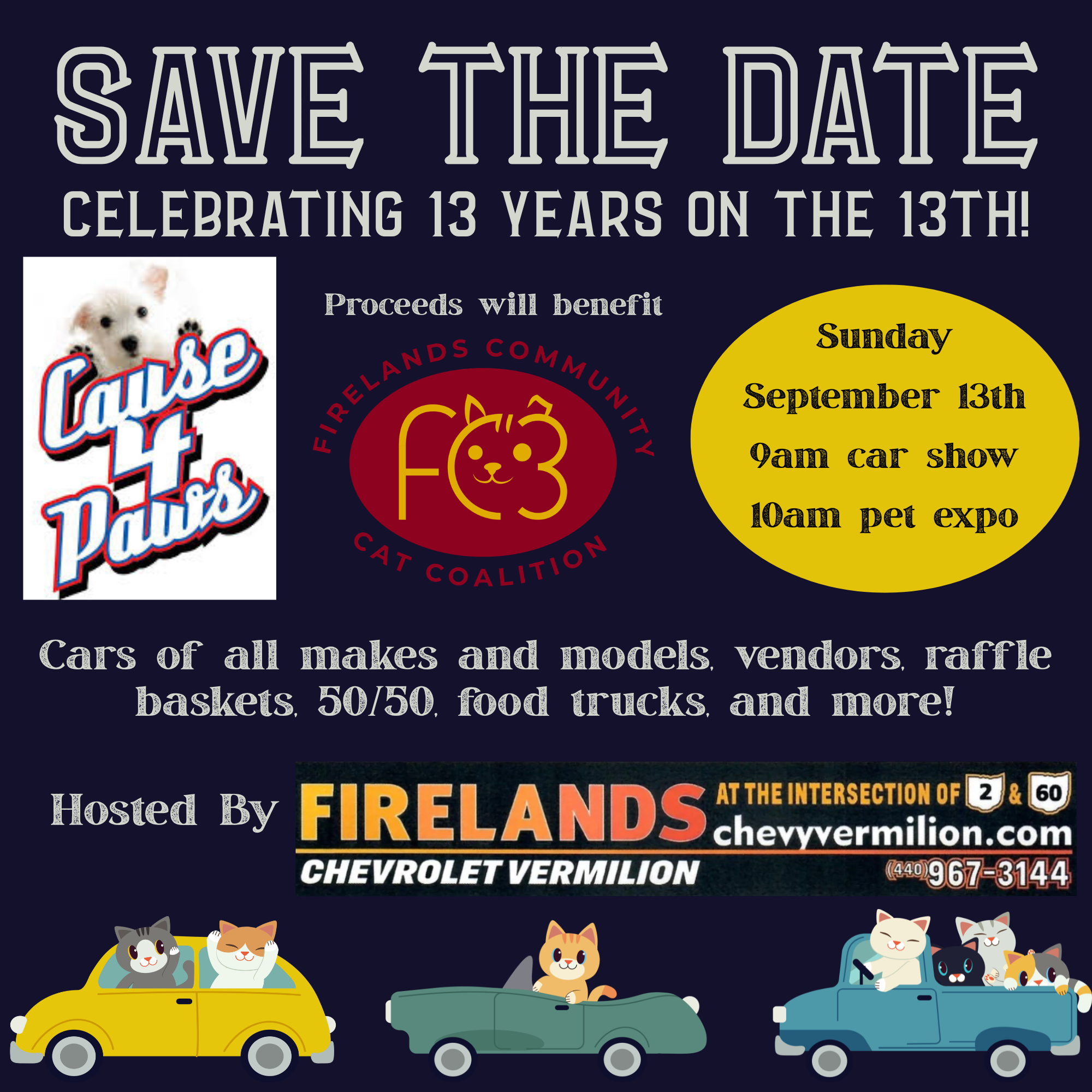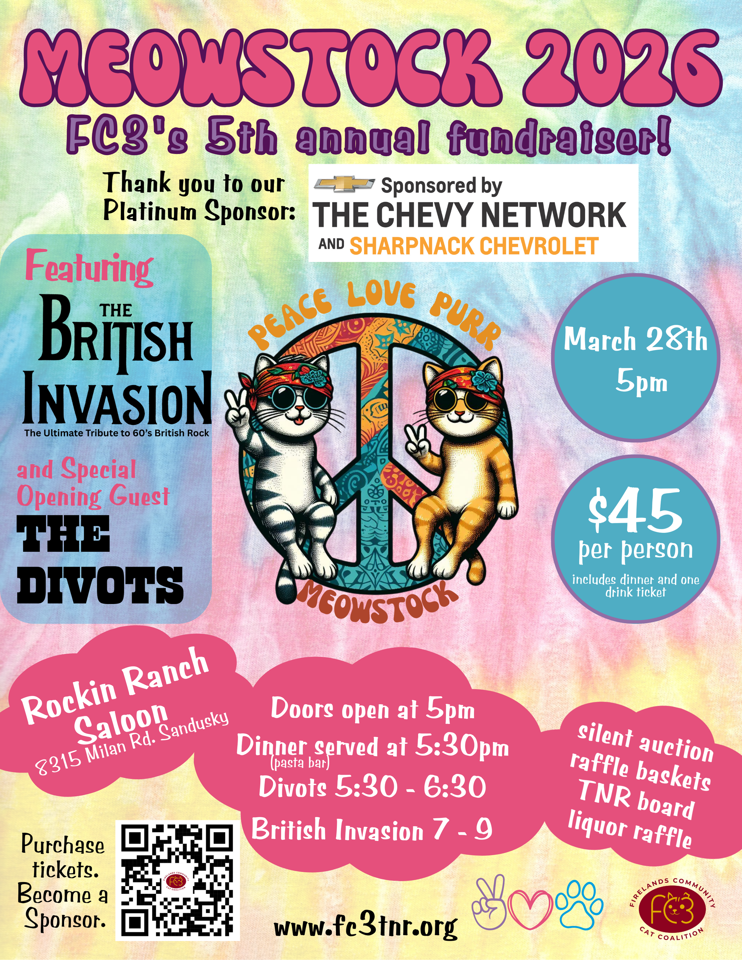 Our mission is to serve the free roaming and feral cats in the Firelands community. Through our TNR (trap, neuter, return) efforts, we will reduce future litters, and feline disease. We will be a voice for the abandoned while educating the community on humanely reducing the cat overpopulation.